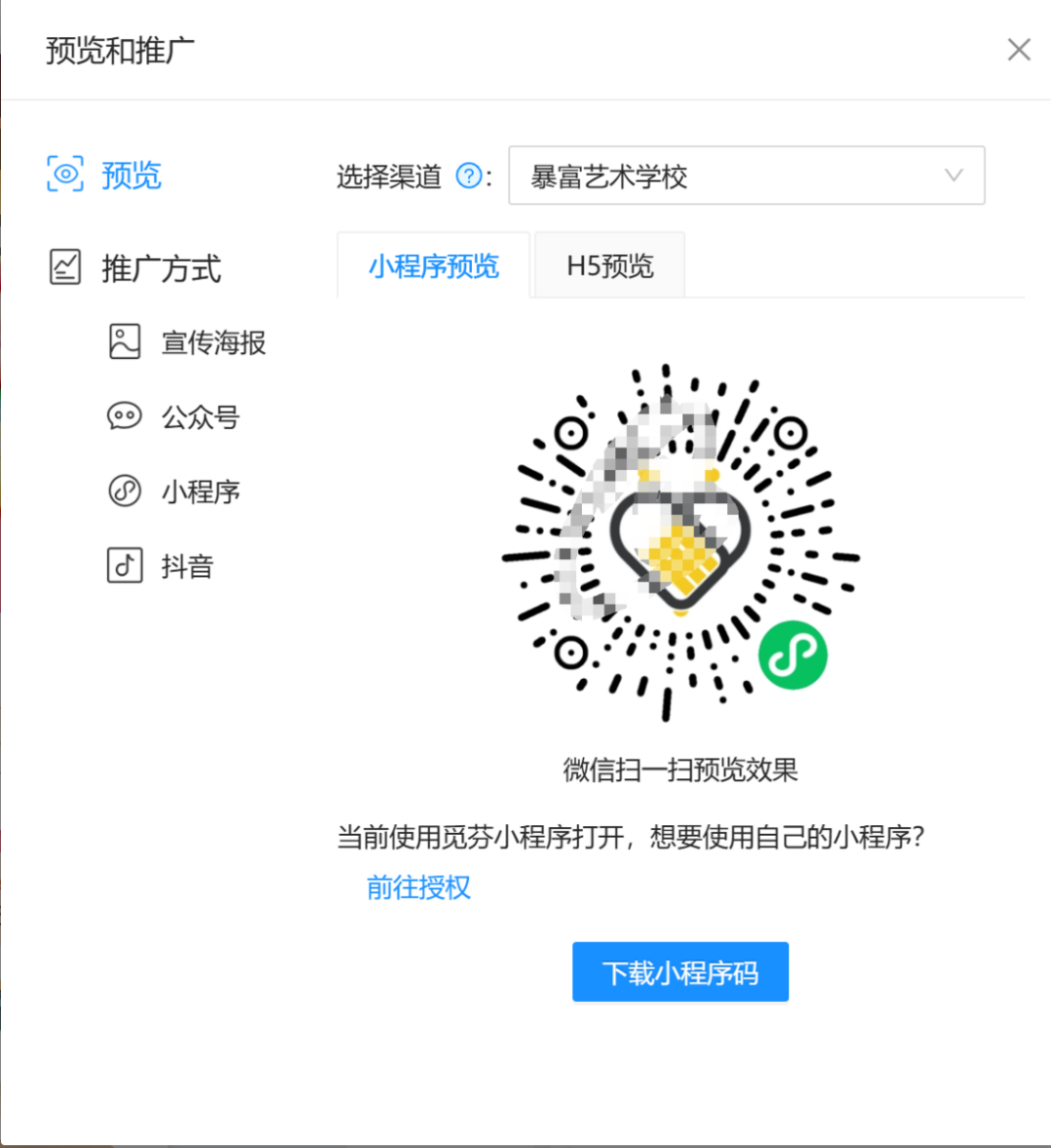 设置好基础信息并确认无误之后保存并预览,通过不同渠道选择和不同渠道推广说明设置发布即可。