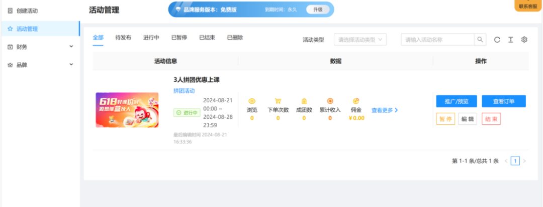 创建并发布之后,我们可以随时登录后台找到【活动管理】对推广效果进行监控,可根据实际数据情况,实时调整活动内容。