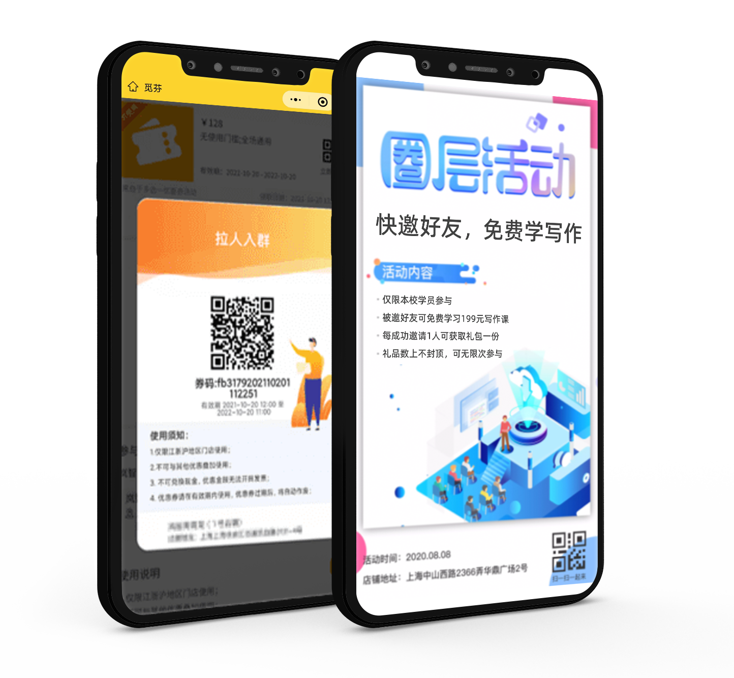 接着上一点,用户主动进微信群,也是需要商家制作推广海报的。这时候商家可以在一些第三方微信营销活动工具平台制作海报推广到指定渠道中,用户扫码即可进群了。比如觅芬就有拉人进群的活动模版,商家写清楚海报文案和名字,用户扫码即可进群, 无需管理员通过。